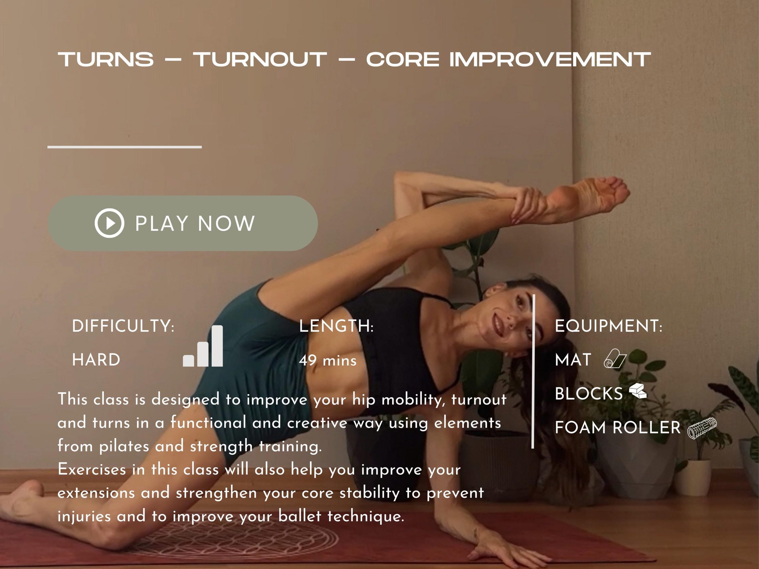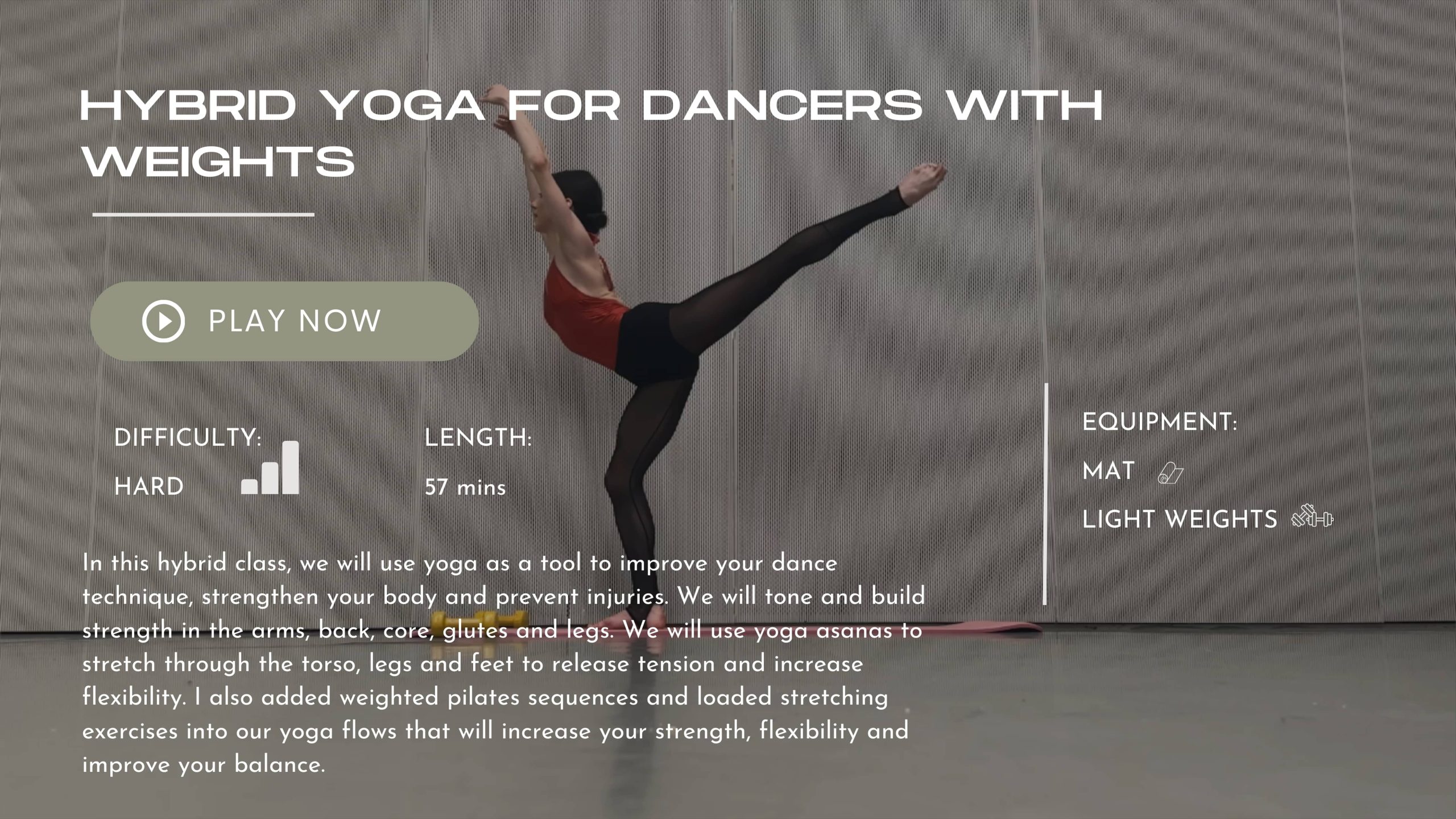 If you are a dancer looking for cross-training to help achieve peak performance in 5 weeks, this course is designed for you! This course includes carefully curated hybrid and functional classes that will help you improve your skills in no time.